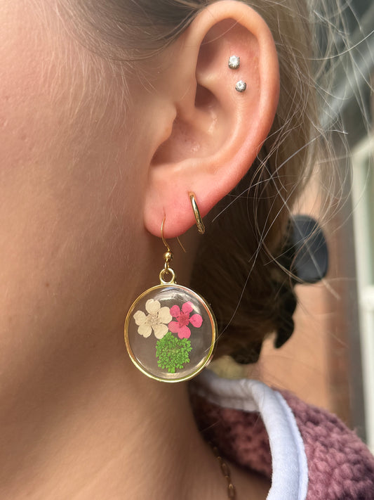 This is a collection of our earring sets. All of our earrings are made from stainless steel material, creating a long-lasting, waterproof, and durable jewelry piece. Keep these pieces on while you shower, go for a swim, hike, exercise, etc. without worrying about them tarnishing.