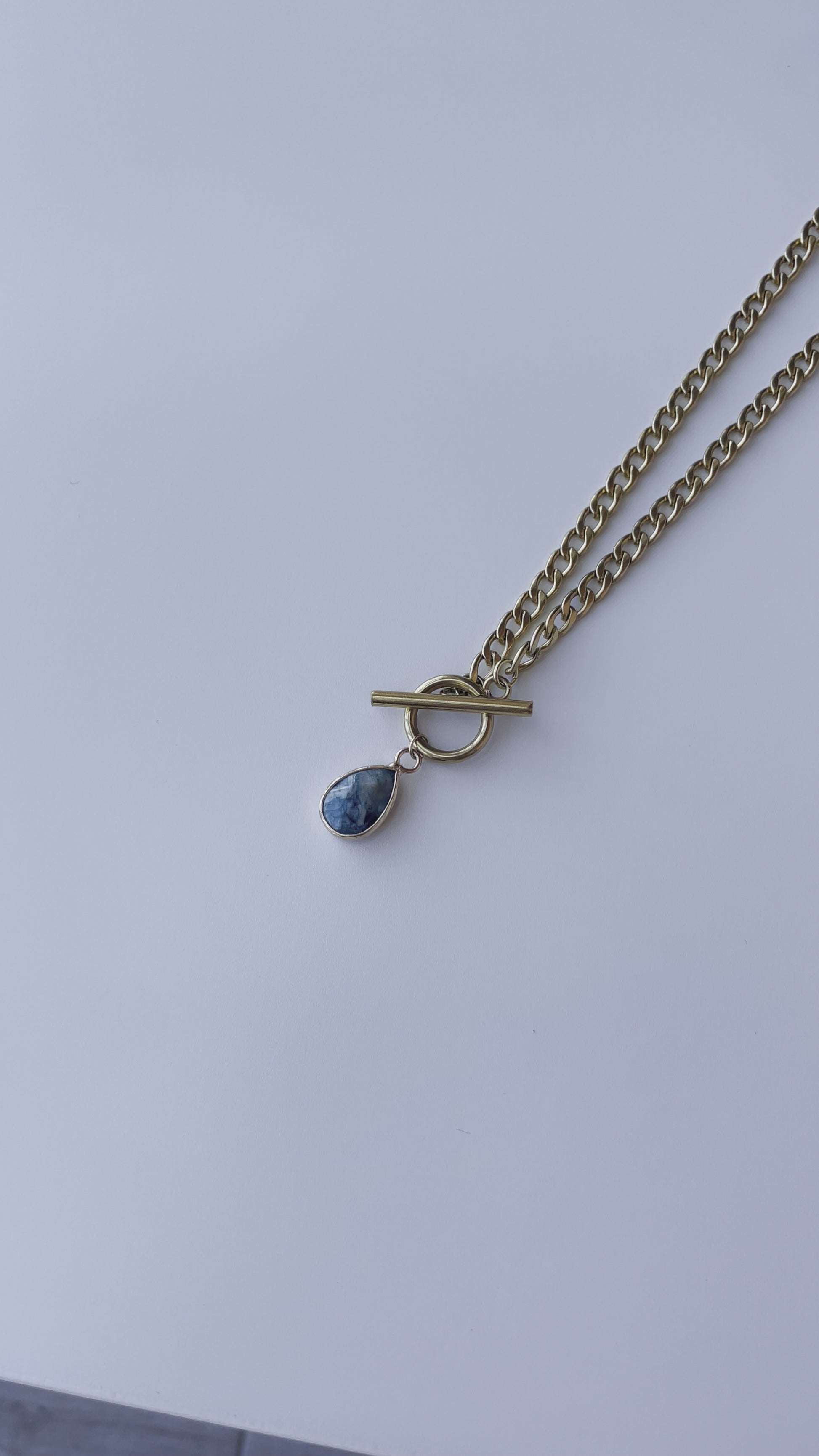 This handmade chain necklace is made with a stainless steel gold chain, toggle clasp, and a blue agate charm ♥ This necklace is durable, waterproof, and tarnish free. Each necklace is carefully handmade to order. Please refer to the last picture to select your desired necklace length.